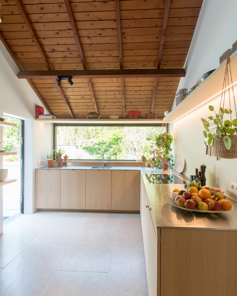 De keuken in deze prachtige woning diende vernieuwd te worden. De woning is volledig open tot in de nok van het dak, wat een zeer bijzondere eigenschap is en dus absoluut moest worden behouden.