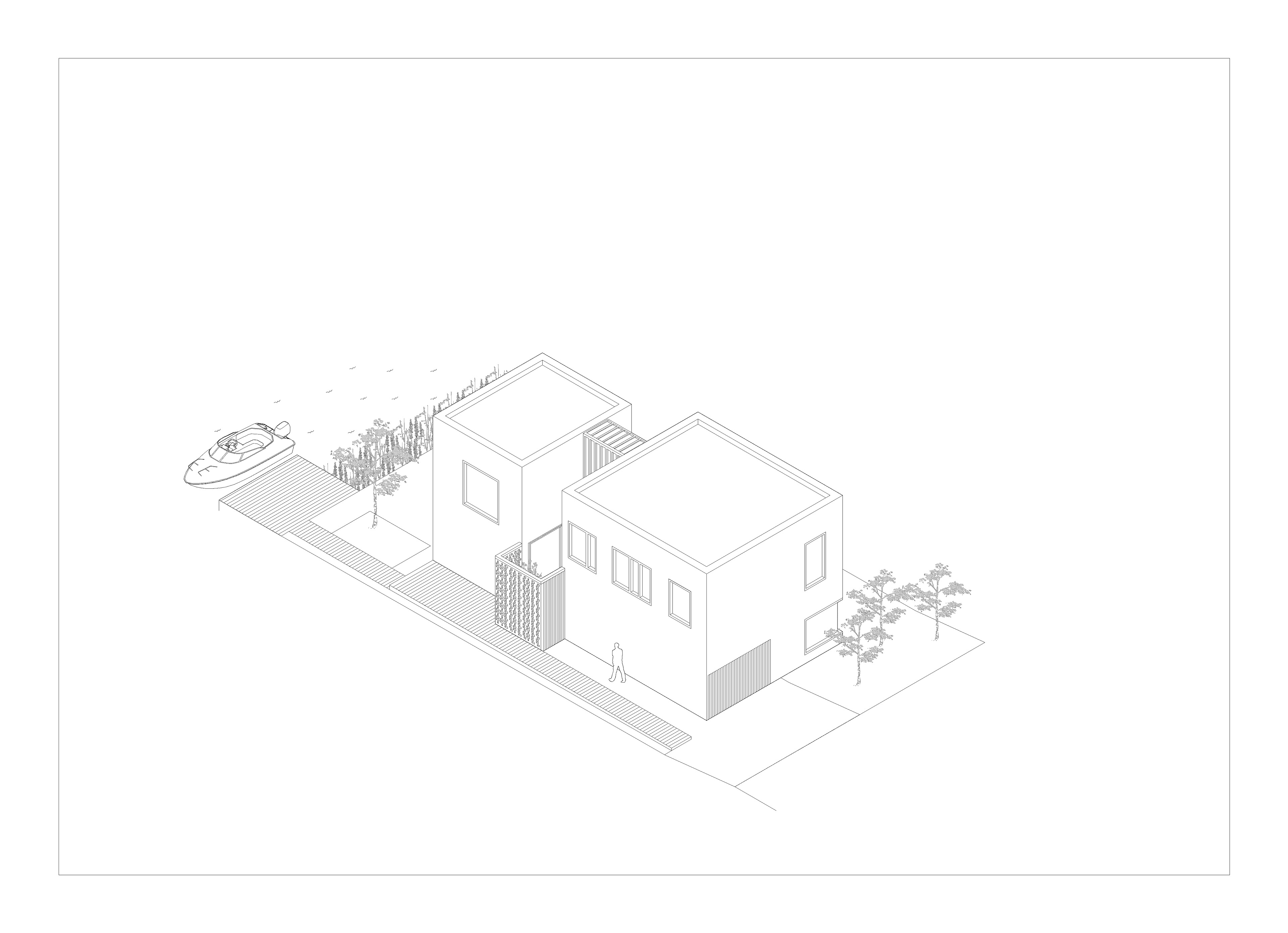 In a second phase we have built an extra volume on top of the living room, with a wooden bridge as connection between the existing volume and the new.